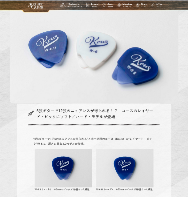 アコースティックギターマガジンのWEB版2025年9月号で、レイヤードピックW-6を紹介いただきました。